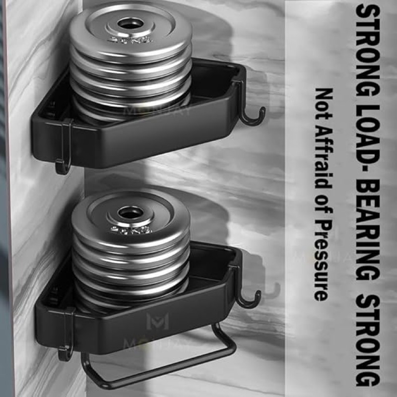 【MORE STORAGE SPACE】This set of shower organizer includes 2 tiers shower Shelf corner with 4 movable hooks. Hooks can hang bath sponge, washcloth and brush. You can adjust the distance between 1 tiers black shower shelf. shower shelves can satisfy more holding space for shampoo, conditioner, razor, body washing, facial cleanser, and other clean or shower accessories.