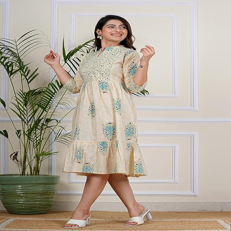 Jaipuri Print Frock Stylish pattern perfect for both office and a day out daily wear, very comfortable and soft fabric quality Jaipuri Girls women's kurti. Color Declaration : There Might Be Slight Variation In The Actual Color Of The Product Due To Different Screen Resolutions.