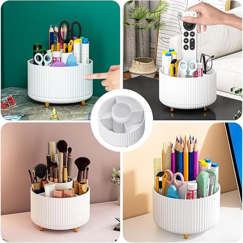 【Multi-Purpose makeup brush organizer】- The Spinning makeup brush organizer is used as a perfume storage rack, cosmetic lipstick rack in the bedroom or bathroom on the countertop, perfect for your vanity, bathroom. Besides, it also can be used for collecting office supplies, craft supplies, small toys. It is widely used in the home, school and office.