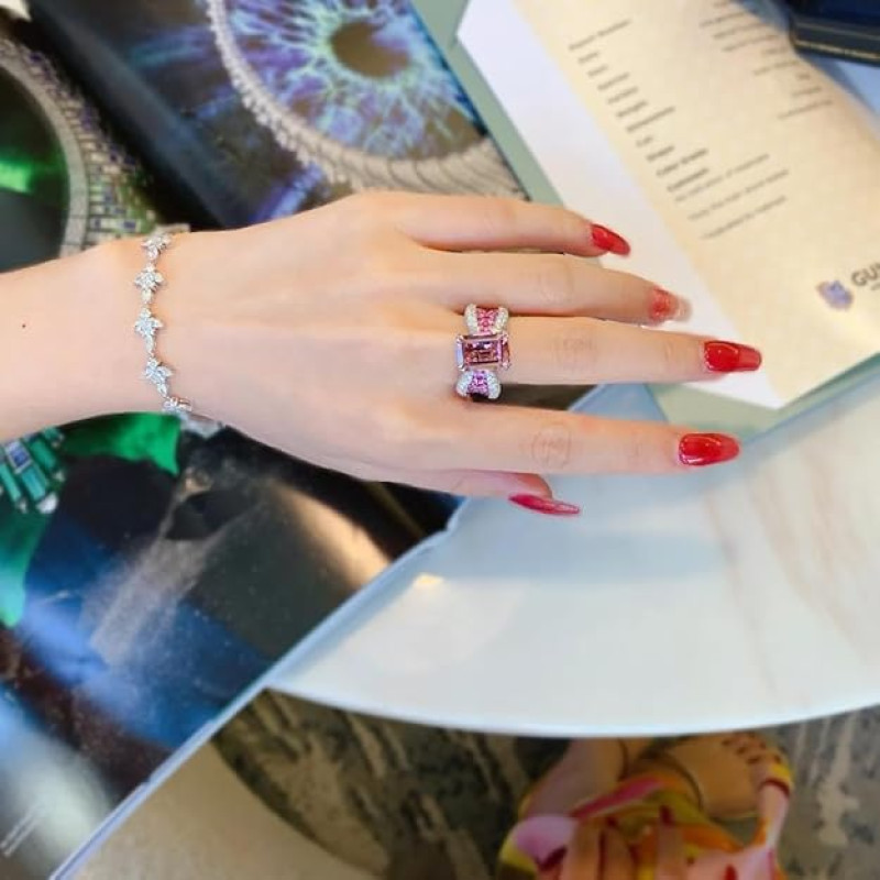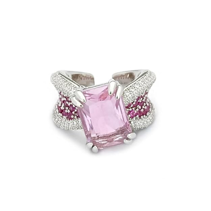 Stunning Princess-Cut Center: Showcases a premium pink cubic zirconia in a secure 4-prong setting, delivering a brilliant focal sparkle.
