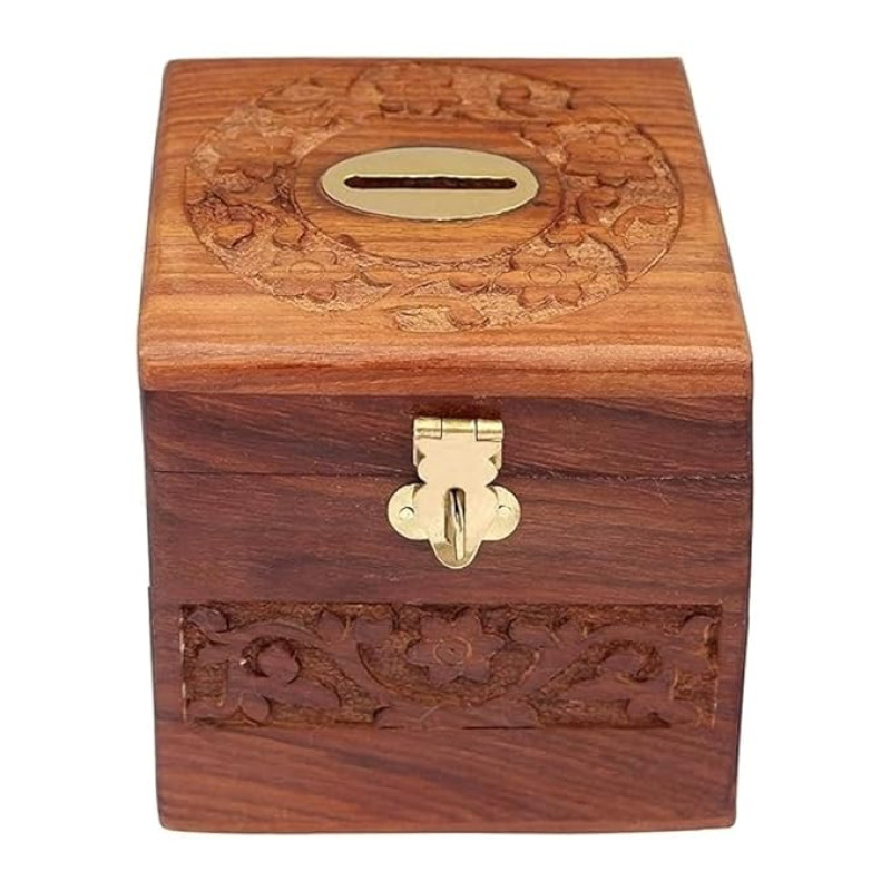 Premium Wooden Money Bank: Beautifully handcrafted from high-quality wood, offering a sturdy and stylish way to store your savings.