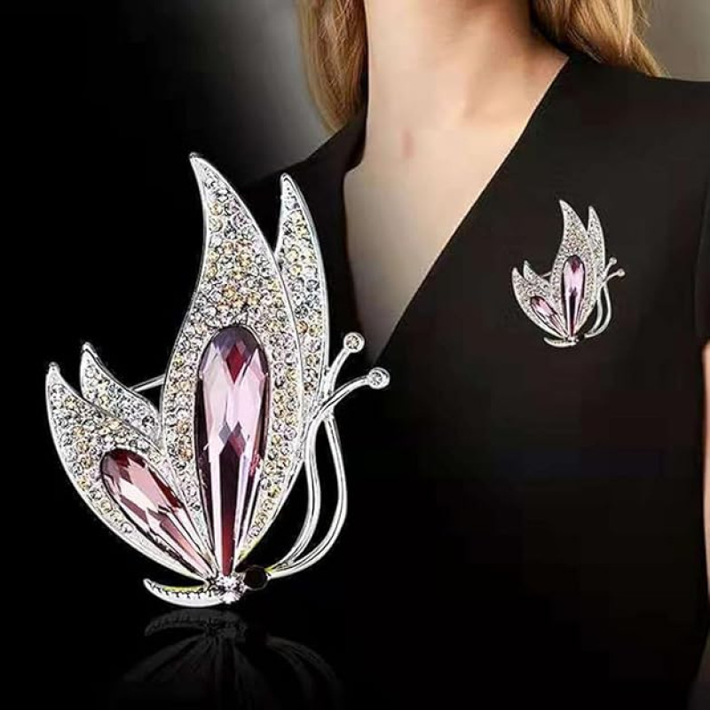 SPARKLING RHINESTONES DESIGN: Adorned with sparkling silver and purple rhinestones, this fashion women brooch adds a luxurious touch to your attire. The rhinestones are meticulously chosen to create a beautiful contrast against the alloy construction, reflecting light and creating an eye-catching effect. The combination of silver and purple rhinestones provides a stunning color palette that goes well with various outfits.