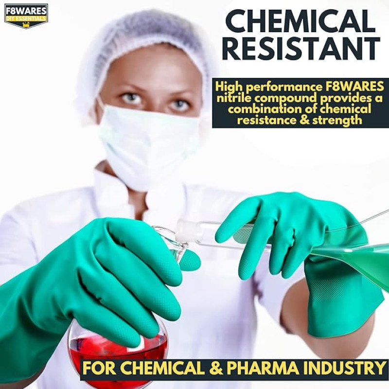 EUSABLE MATERIAL : Made from high performance chemical acid resistant nitrile ; chemical gloves known as bathroom cleaning gloves & acid resistant gloves - Industrial gloves & gloves for Cleaning & alternative to latex or rubber gloves