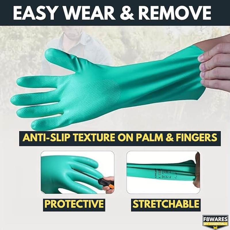 F8WARES 13 Inch Long Nitrile Rubber Gloves For Chemical Use - Hand Gloves For Bathroom Cleaning - Hand Gloves For Washing Utensils - Washing Gloves For Kitchen Tools & Cleaning Supplies,2 Piece