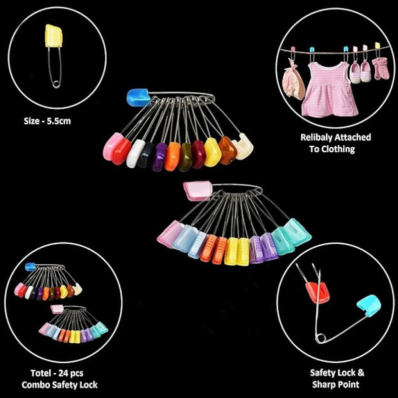 ✓ Set of Multicolor Single Lock Double Lock Combo Nappy Clothes Dresses Safety Saree Pin Brooch which Matches with all Sarees plates, Dupatta, lehanga choli ,Chunri, Odhni or scrafs and hijabs.