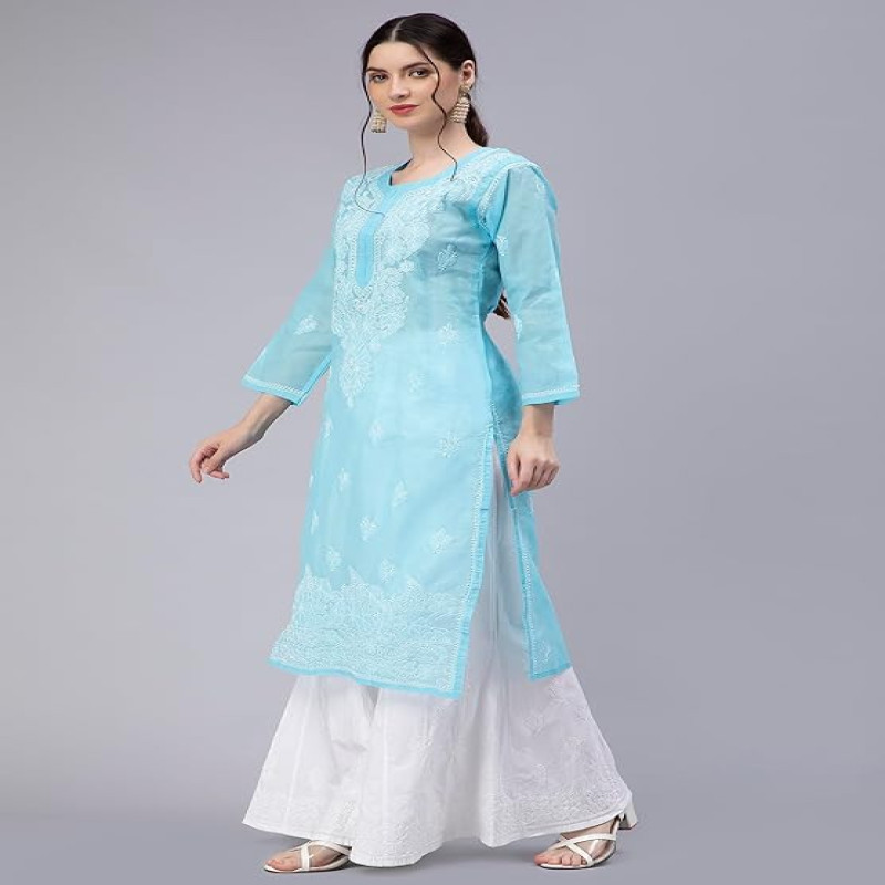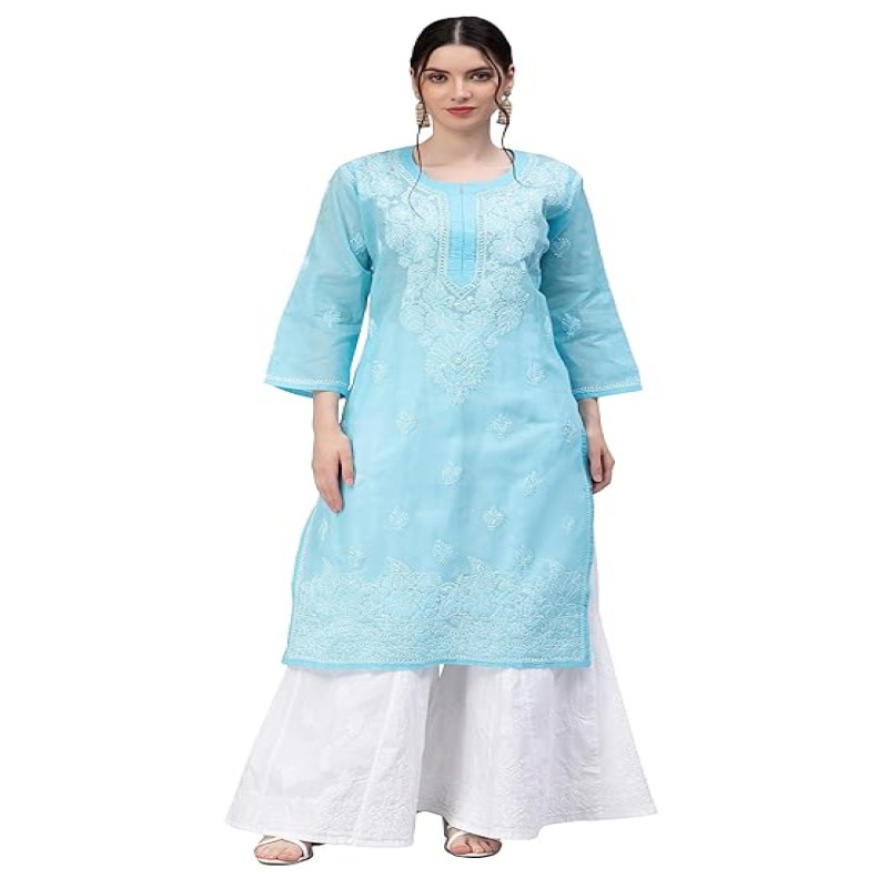 Hand Embroidered Lucknowi Chikankari Cotton Kurta Kurti for Women