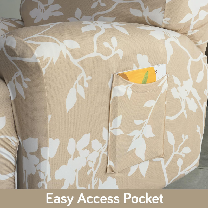 HOKIPO Polyester 140gsm Fully Covered Recliner Sofa Cover 1 Seater, Buff Brown Sillehoute Floral (AR-4940-C7)