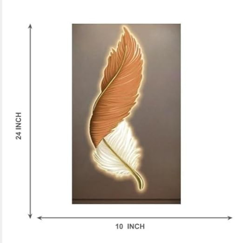 ILLUMINATION: Features integrated LED backlight technology that creates a soft, ambient glow around the metallic feather sculpture