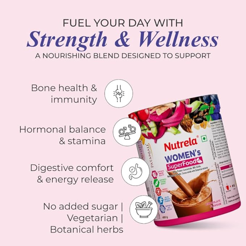 VEGETARAIAN & 𝗦𝗔𝗙𝗘: Nutrela Women’s Superfood is made from vegetarian ingredients, free from added sugar and artificial preservatives ensuring a clean and wholesome approach for women nutrition.