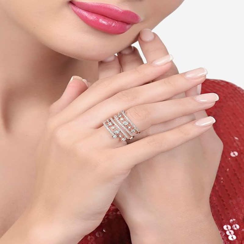 Feature: Zaveri Pearls presents Contemporary Rose Gold Cubic Zirconia studded Brass Ring, sure to catch amazing complements by wearing it on a fancy “evening” look. You’ll want to have a look at our full line of cubic zirconia jewelry for the pieces that make a fashion statement at every stage. And of course, there are many more CZ options that make for perfect gifts