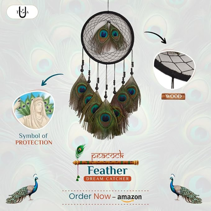 Artistic Design: Handcrafted with intricate details, this dream catcher features a stunning peacock feather design, perfect for adding a touch of cultural elegance to your space