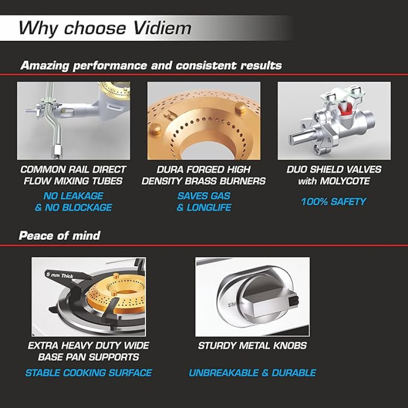 Precision Gas Valves & Sturdy Metal Knobs — For safe and precise flame control