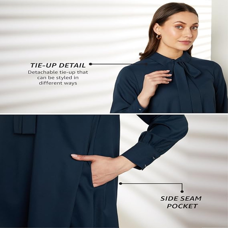 - Customize your look effortlessly with the detachable tie-up feature, on the neck or on your waist. This dress is fully lined for comfort of wearing