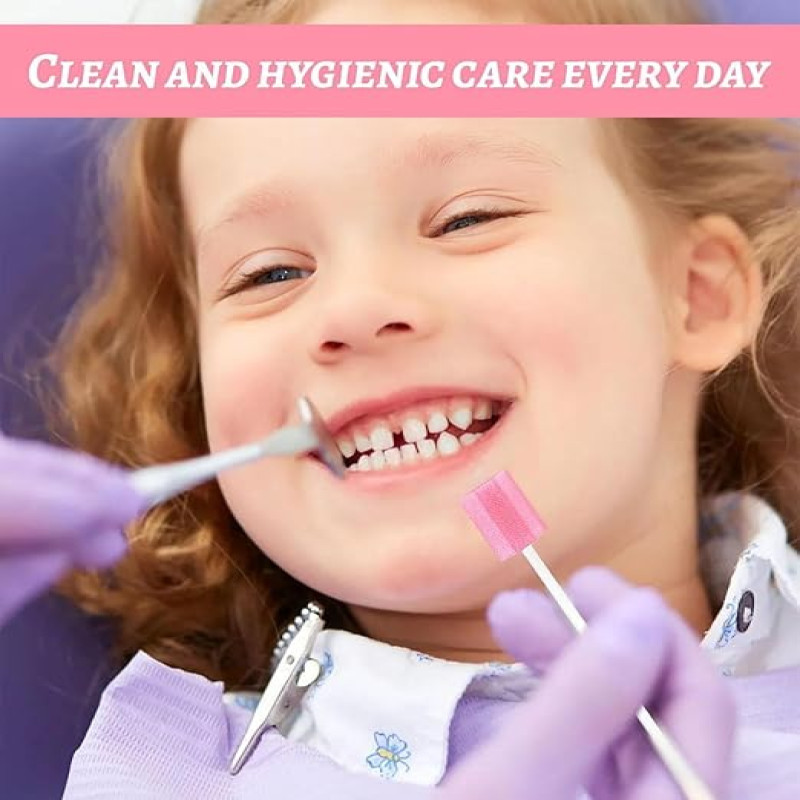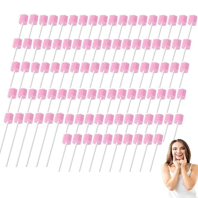 100PCS Mouth Swabs, Mouth Swabs, Pink Hexagonal Sponge Sticks, Oral Care Cleaning Tools, Gentle and Effective for All Ages, Ideal for Daily Dental Hygiene and Sensitive Mouth Care