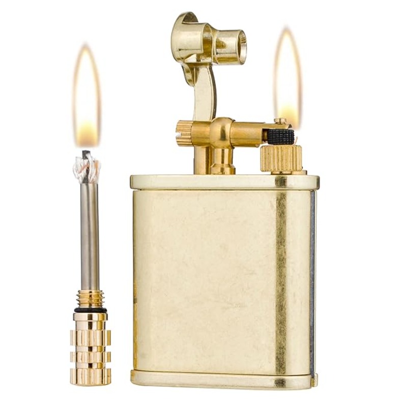 2 in 1 Lighetr Permanent Match Antique Style Lift Arm Kerosene Lighter with Permanent Match (Bronze)