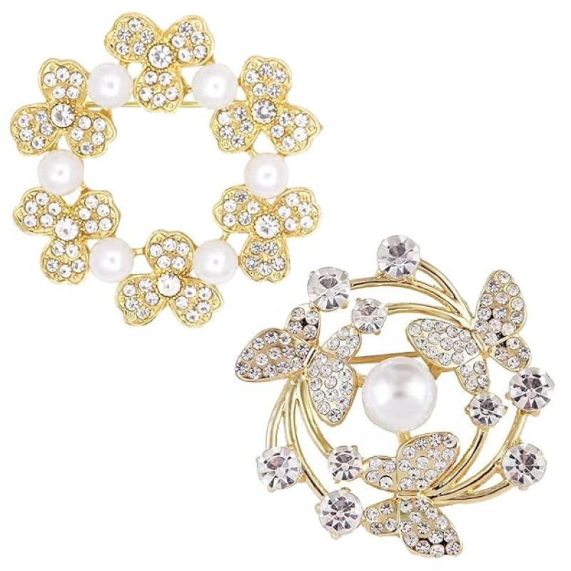 2Pcs Brooch Pin for Women, Elegant Butterfly and Floral Design, Versatile Accessory for Wedding, Business, and Daily Fashion, Gift for Women
