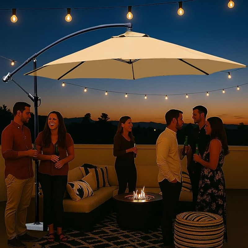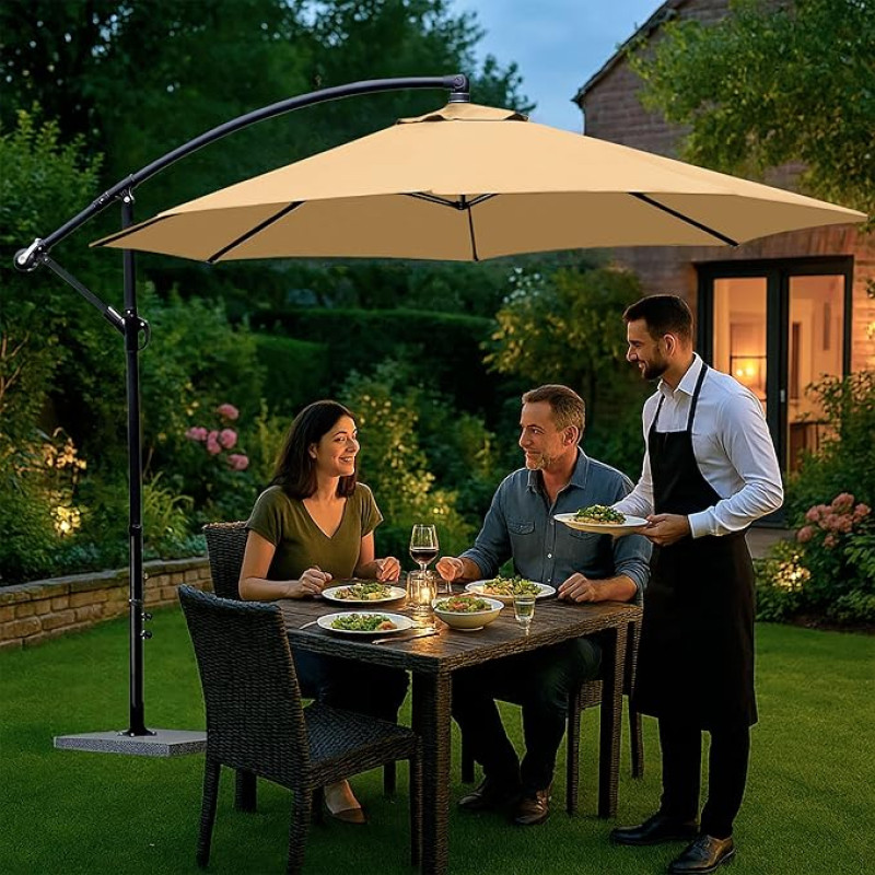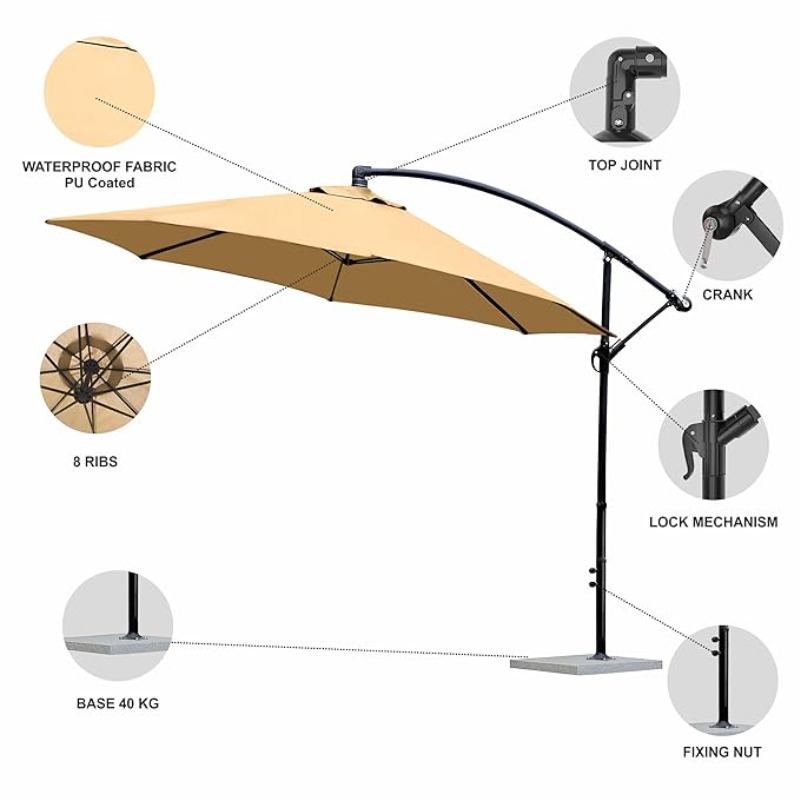 7 star DECOR 9ft Side Pole Umbrella with 40kg Base Waterproof UV Protected Wind Resistant Outdoor Sunshade for Garden Terrace Cafe Resort (Beige)