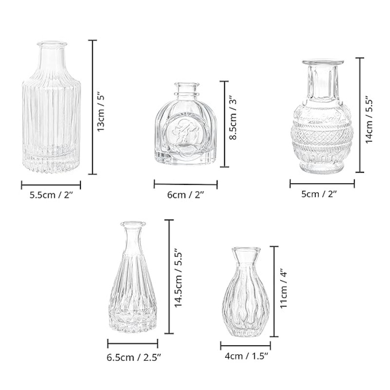ABOUT SPACE Glass Bud Flower Vase – Pack of 5 Clear Glass Centrepiece for Mini Flowers-Antique Collections for Wedding Decorations Sturdy Textured Drop Shape Table Top Decor for Home, Restaurants