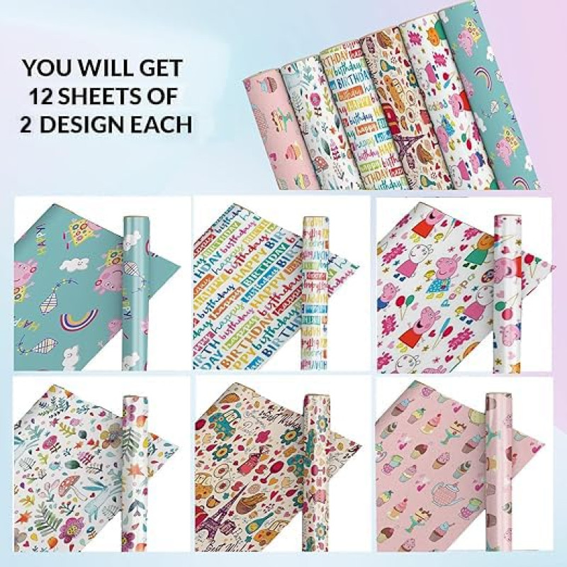 AccuPrints Pack of 12 | Size 17 X 28 Inch |Gift Wrapping Paper Sheet - Gift Paper - Gift Wrap Roll - Gift Cover Rapping Paper - Gift Wrapper - Gift Packing Material,Multicolor