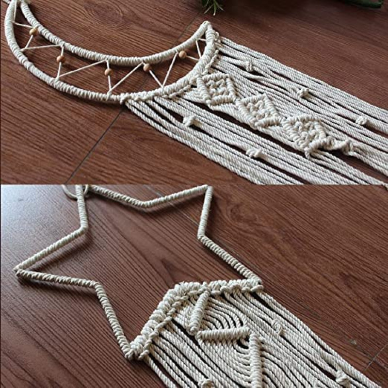 ACN Kohinoor Cotton|Handmade Macrame Star Moon Dream Catcher|ACNDC 11|Boho Wall Hanging Decor,Best Gift for Girls,Friends,Marriege Party,Home,Bedroom,Living Room Decoration 30" Lx10" W,Off-White
