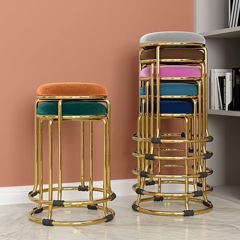 Akifi Craft Flannel Round Stool - Versatile Stackable Chair for Dining, Living Room, and Shoe Changing - Elegant Metal Low Stool for Home Furniture (Black, 2)