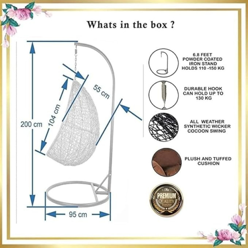 Alisha Craft Furniture Single Seater Swing Chair with Stand & Cushion Outdoor Indoor Balcony Garden Patio,Powder Coated Frame,UV Protected Wicker,Premium Cushion NS-17