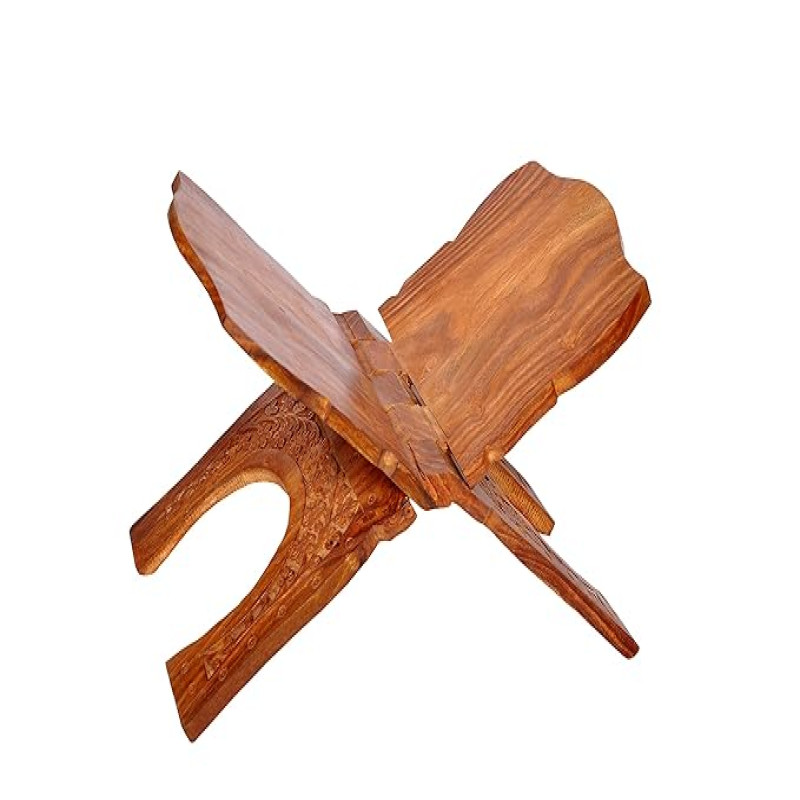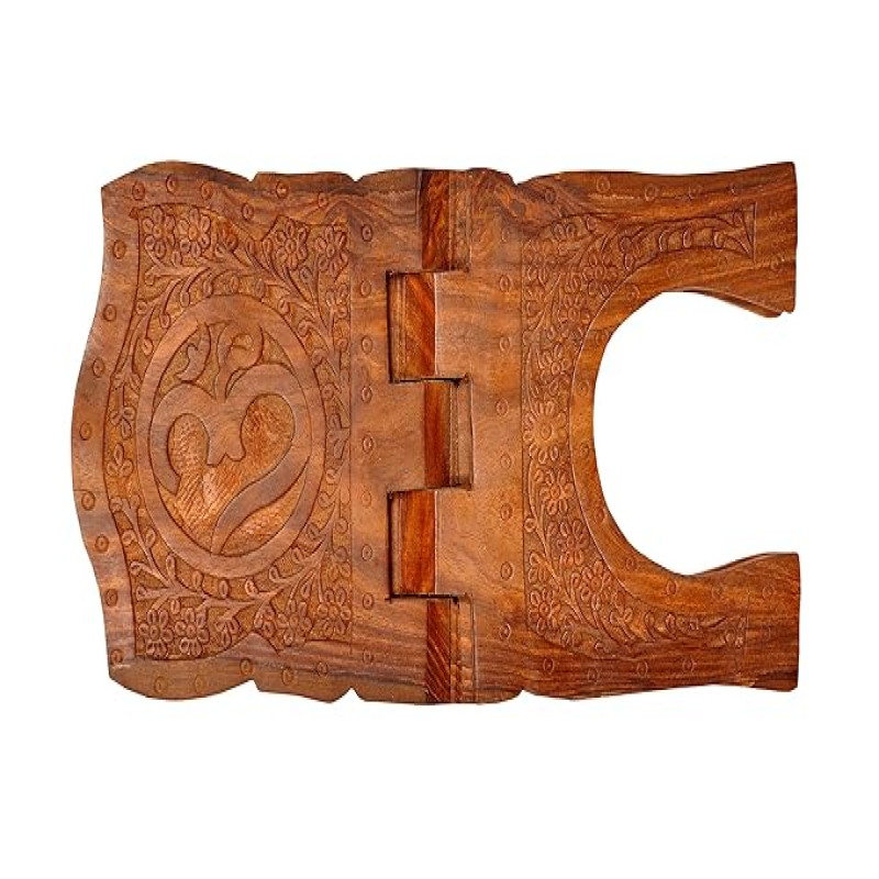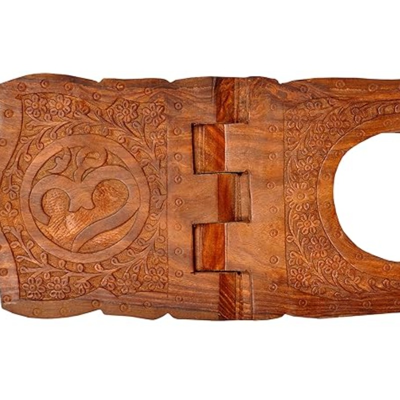 All About Wood Folding Hand-Crafted Full-Work OM Book Stand/Holder/Rest/Keep for Home/Work Space/Religious Places (Sheesham, Brown, Size: 18 Inches)