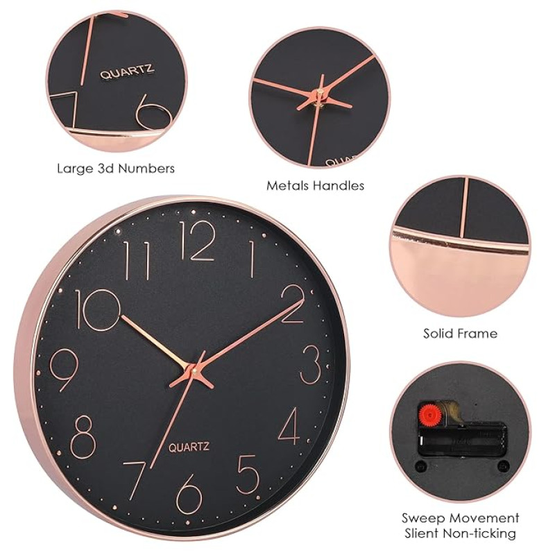Amazon Brand - Umi 12 Inches Non Ticking Silent Quartz Round Designer Plastic Bold Number Wall Clock for Home Kitchen Bedroom Hall Living Room Office (Full Figure_Black)