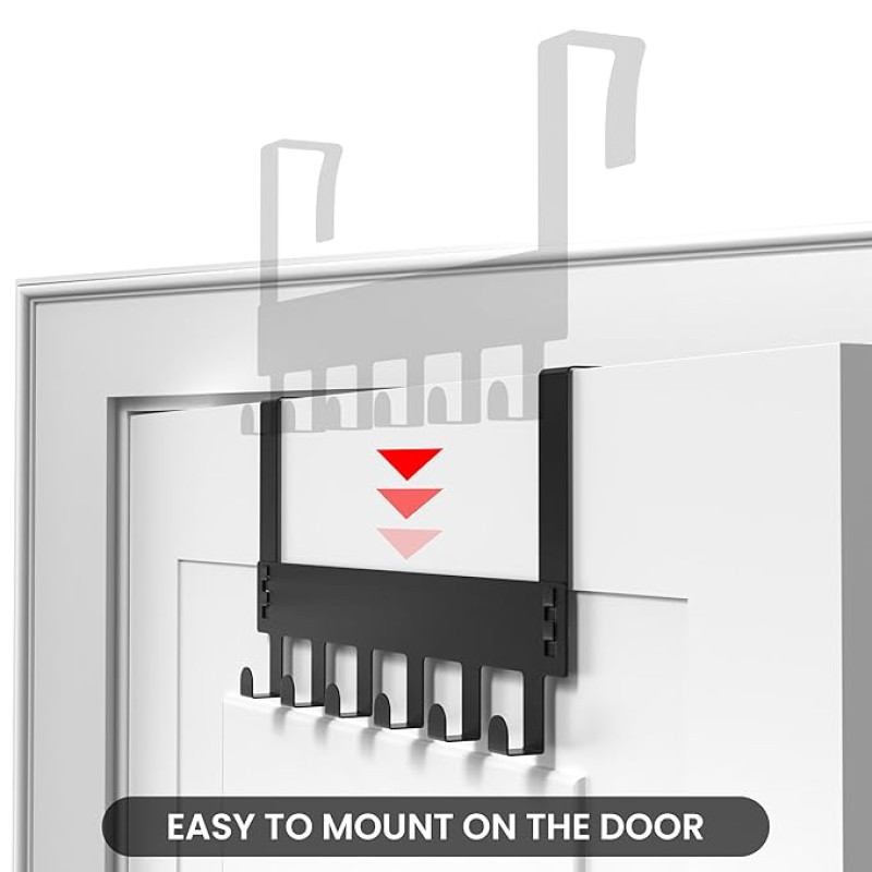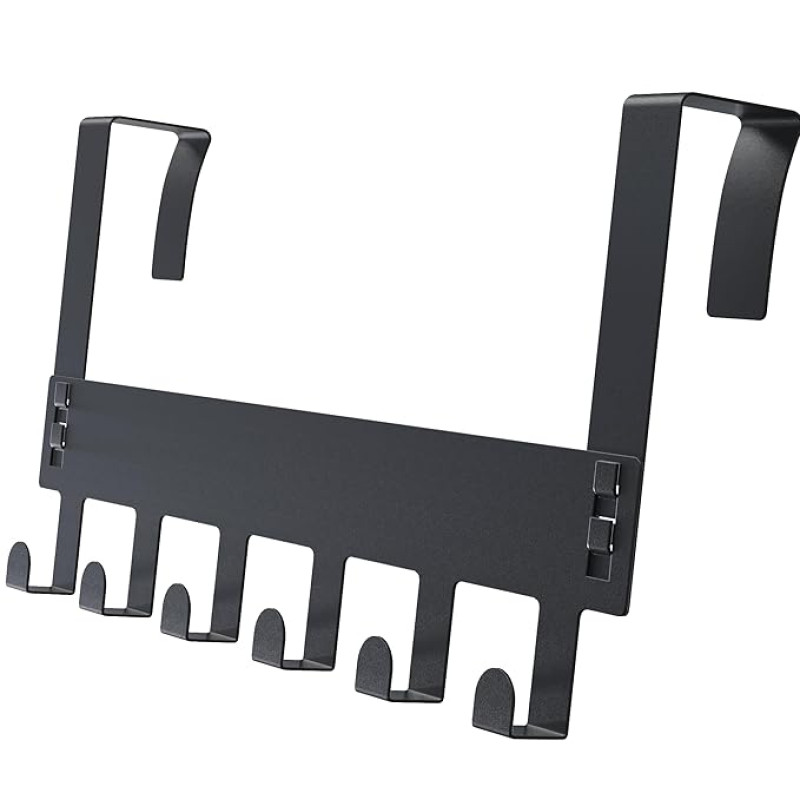 Amazon Brand - Umi Over The Door Hook Hanger, Hanging Organizer Rack Steel Door Hook Hanger Wall Hook Rack (6 Hooks) (Black)
