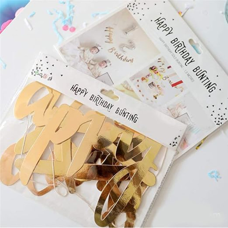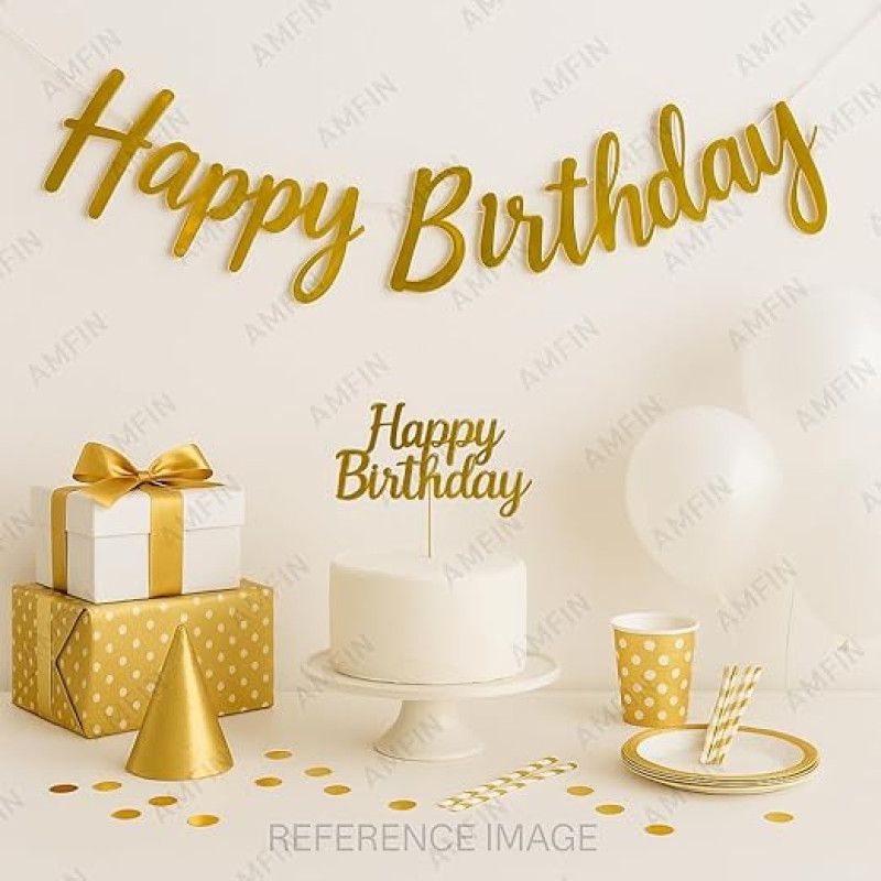 AMFIN (Pack of 1) Happy Birthday Party Cursive Metallic Banner - Gold