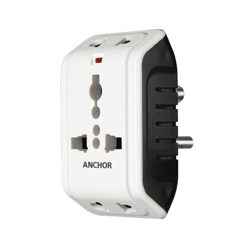 ANCHOR 6A 3 Pin Multi Plug Socket Travel Adapter with Universal Socket, 3 Pin Multi Plug Extension Socket (White)