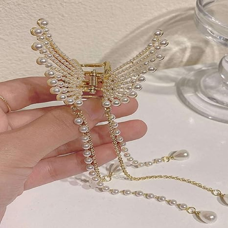 ANNACREATIONS Latest Korean Fashion Style Metal Hair Claw Jaw Clamp Clips Hair Clutcher Hair Clip Hair Pin Hair Accessories For Women & Girls (Pack Of 1,white & gold)