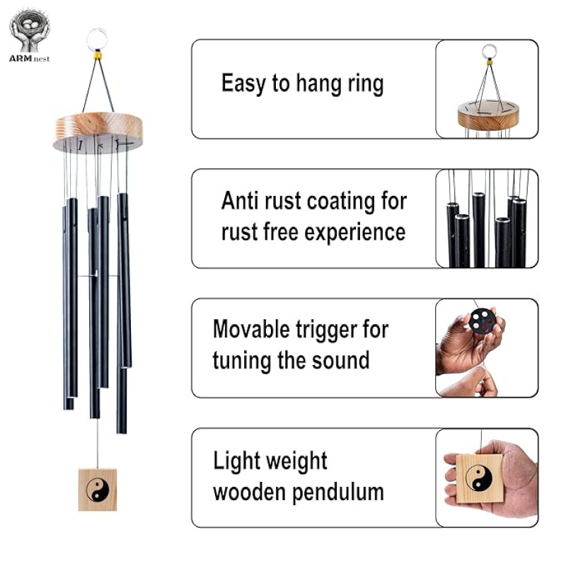 ARM nest Wind Chime | Wind Chimes for Balcony | Wind Chimes for Home Positive Energy (Black)