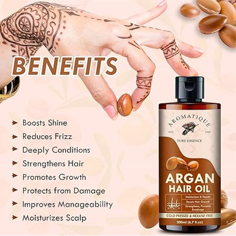 Aromatique Argan Oil, Argan Oil for Hair Growth Strengthen Dull & Dry Hair, Helps Control Hair Fall & Promotes Hair Growth Multi purpose oil.Non Sticky Daily Use Hair Oil 200ml