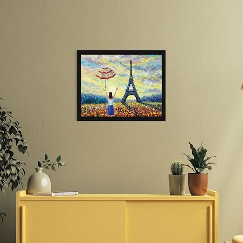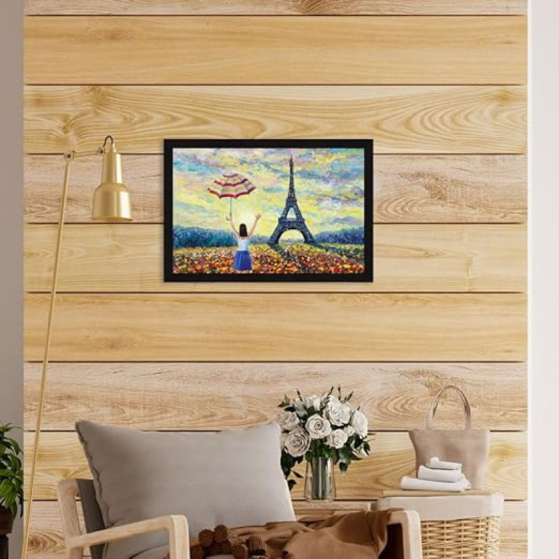 ArtX Paper Wall Decor Paintings with Frame for Home Decoration Eiffel Tower, Painting for Living Room - Framed Painting for Wall Decoration, 12.0 X 18.0 inches, Set Of 1