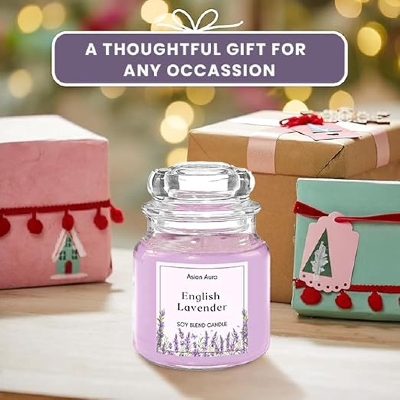 Asian Aura English Lavender Scented Jar Candle - Highly Fragranced Approx. 70gms Wax (Purple, Pack of 1) - Relaxation, Tranquility, and Serenity in Every Scented Flame