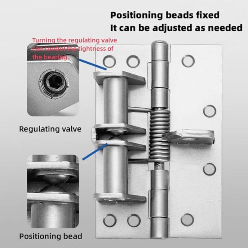 Automatic Door Hinge, Heavy Duty Self-Closing Wooden Door Closer, Hardware Spring Hinge, Automatic Self Closing Door Hinges with Positioning 90 Degrees (Silver)