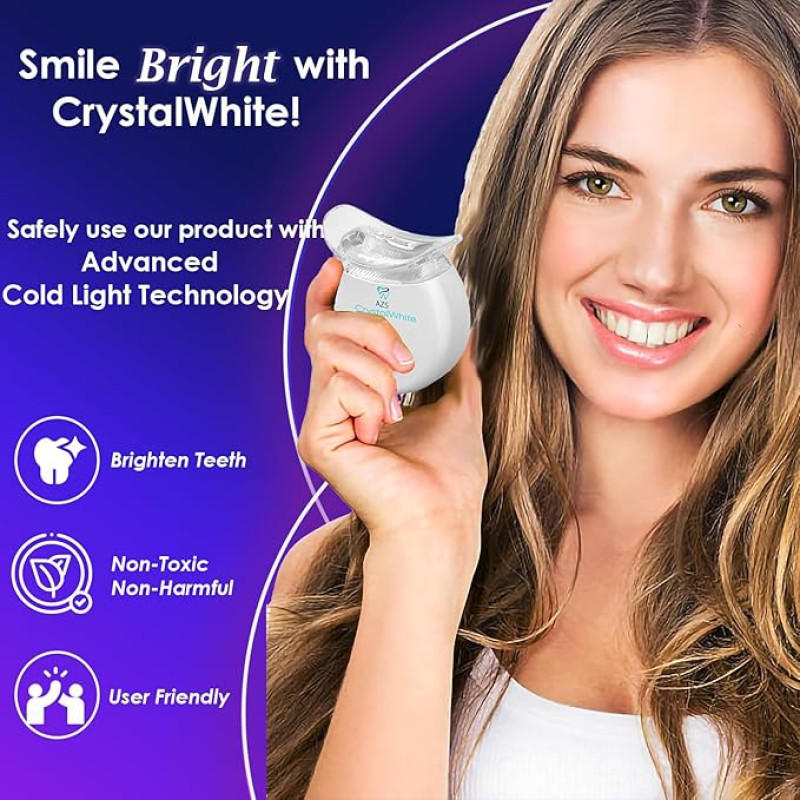 AZS CrystalWhite Instant Teeth Whitening Kit - 5 x LED Lights Technology for Faster and Safer Visible Results, Oral care, Manual Dental Whitening Treatment for adults at Home, Zero Sensitivity, Removes Tooth Stains, Get Dazzle Brighter Smile
