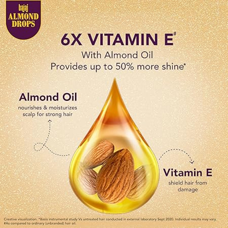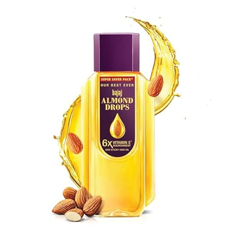 Bajaj Almond Drops Hair Oil, 625ml | 6X Vitamin E Nourishment | Light and Non-Sticky Hair Oil For Hair Fall Control