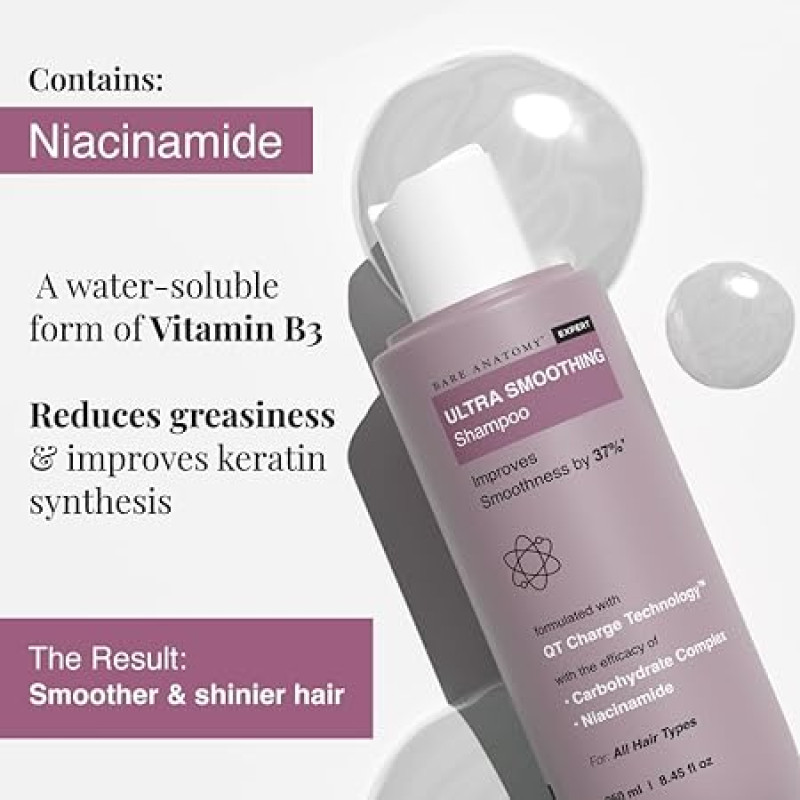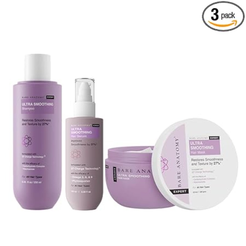 Bare Anatomy Ultra Smoothing Shampoo + Hair Mask + Serum Kit | Restores Smoothing & Texture by 27% | Carbohydrate Complex & Niacinamide | Dry & Frizzy Hair | Paraben & Sulphate Free | Women & Men | 250ml + 250g + 100ml