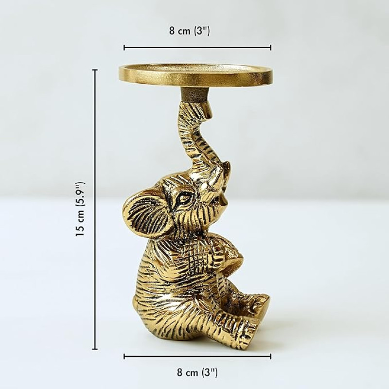 BEHOMA Aluminium Elephant Pillar Candle Holder Statue for Home Decor | Tabletop Showpiece for New Home Diwali Ganpati Decoration |Gift Article for Housewarming Gold (Candle Not Included), 8 x 8 Cm