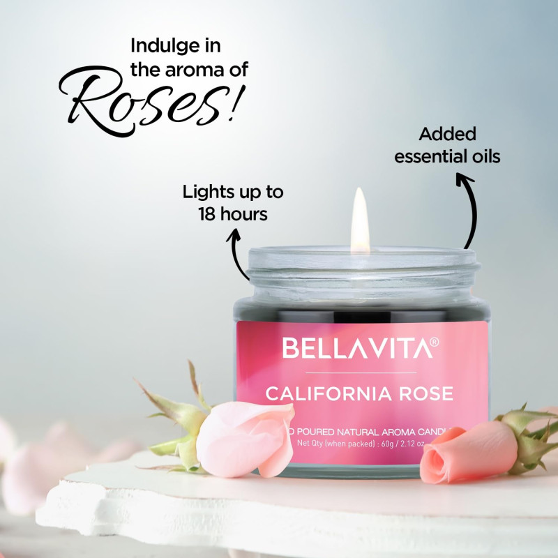 Bella Vita Organic Soy Wax Aroma Candles Set Of 4 Scented Aromatic Fragrance Vanilla, Cinnamon, Lavender & Rose For Gifting Home, 60 Gms Each,Up To 15 Hours Burn Time