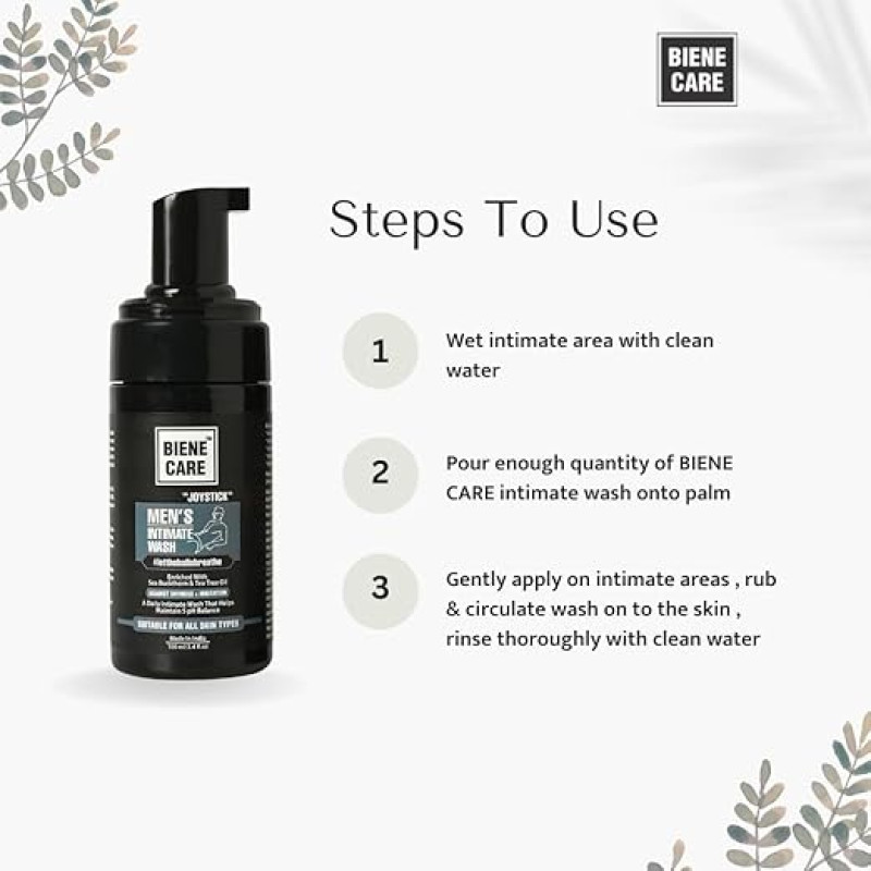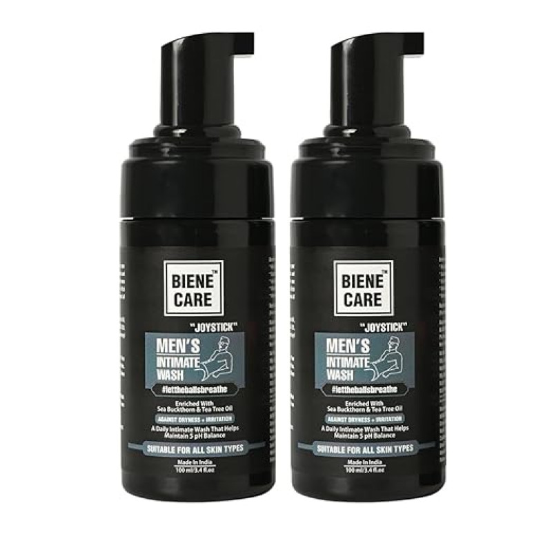 BIENE CARE Intimate Wash for Men Pack of 2 - Anti Odour | pH Balanced Intimate Hygiene Wash with natural foam wash and Sea buckthorn perfume,Tea Tree Oil -100Ml (Pack Of 2)
