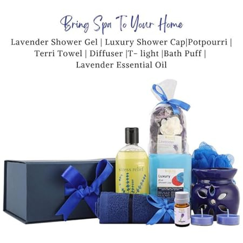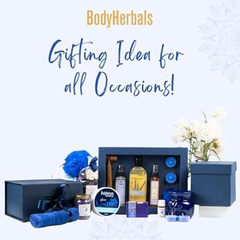 BodyHerbals Lavender Bath and Body Care Gift Set for Women and Men| Luxury Skin Care Kit with Spa Accessories | for Rakhi Gift set Hamper | 8 Pcs| Luxury Gift for Birthdays, Anniversaries, Wedding and Special Celebrations| 100 % Vegan