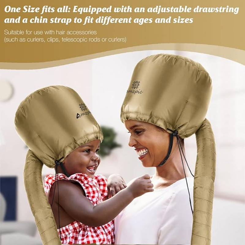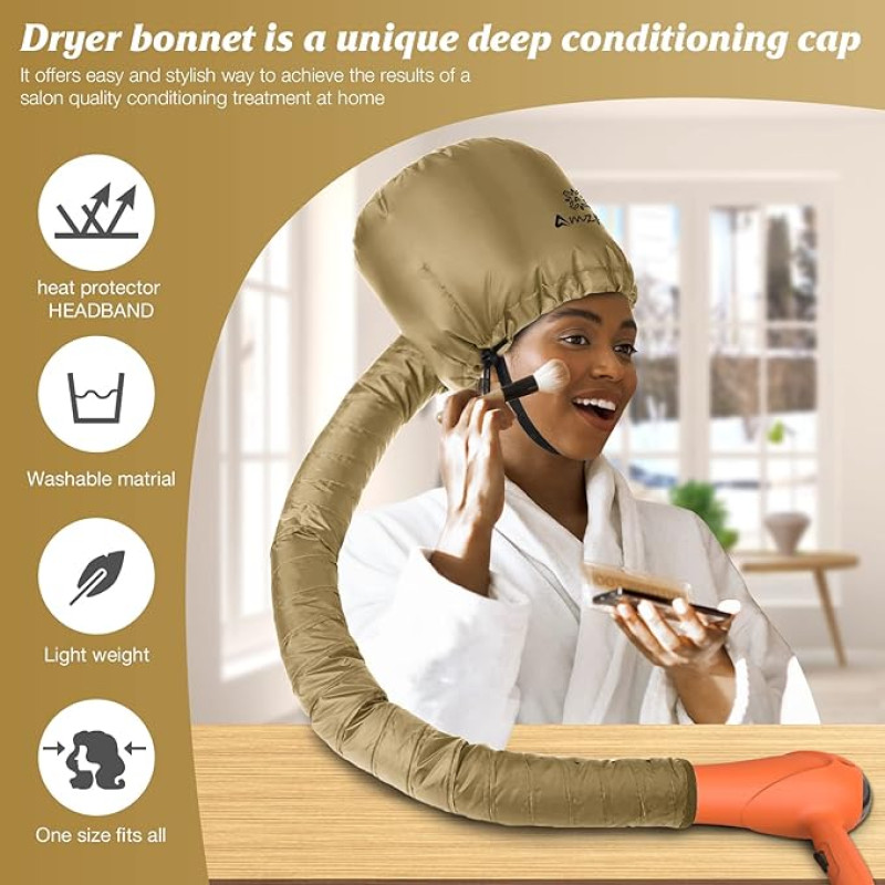 Bonnet Hood Hair Dryer Attachment - Soft, Adjustable Extra Large Bonnet Hair Dryer for Speeds Up Drying Time at Home, Easy to Use for Styling, Curling and Deep Conditioning (Gold)