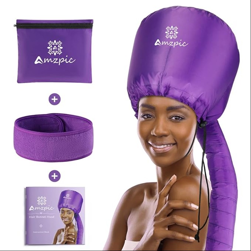 Bonnet Hood Hair Dryer Attachment - Soft, Adjustable Extra Large Bonnet Hair Dryer for Speeds Up Drying Time at Home, Easy to Use for Styling, Curling and Deep Conditioning (Purple)