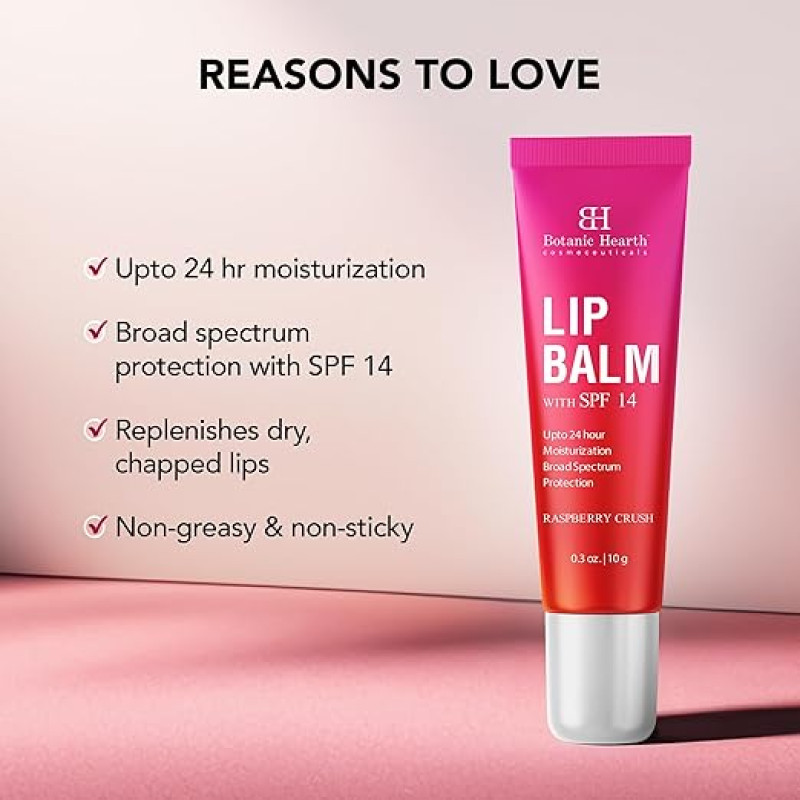 Botanic Hearth Raspberry SPF Lip Balm with Transparent Shine for Dark, Dry, Chapped Lips with Jojoba Oil, Vitamin E & Allantoin | Lip Care Balm for Women & Men | SPF Sun Protection | 10g