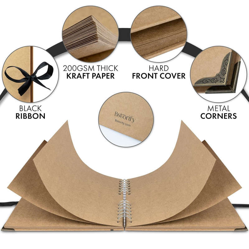 Bstorify Scrapbook Photo Albums Brown Thick Kraft Paper Scrap Book Ideal for Your Scrapbooking Albums Art & Craft Projects (Wedding), 60 Pages, Medium