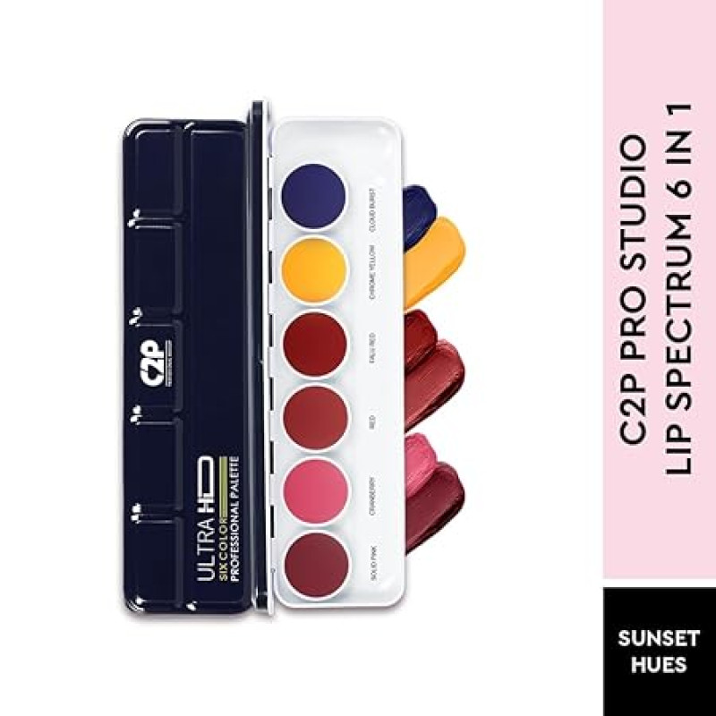 C2P Pro Pop Lip Shade 6 in 1 Lipstick Palette for Women – Waterproof, Long-Lasting, Smudge-Proof, Highly Pigmented Lip Pallete for All-Day Wear (Sunset Hues, 21g)