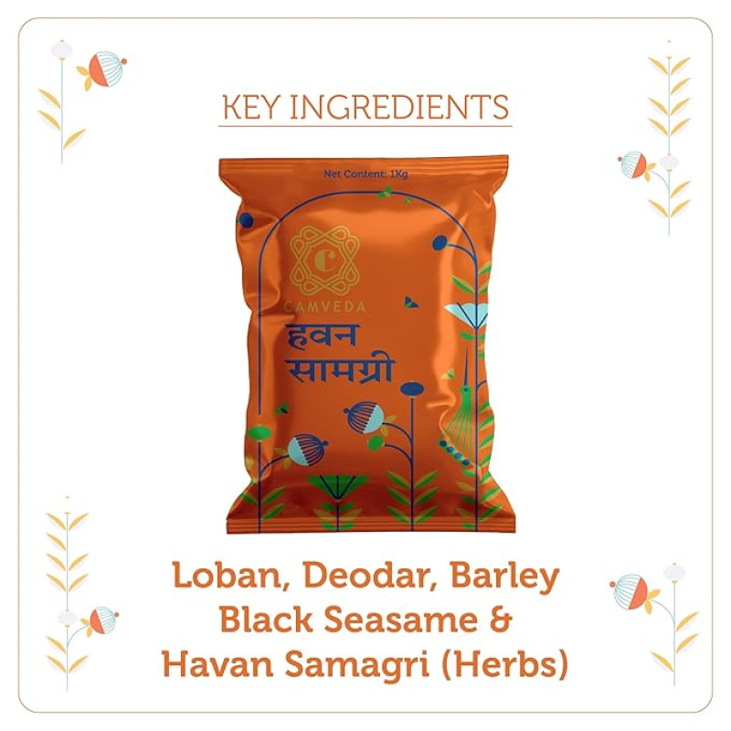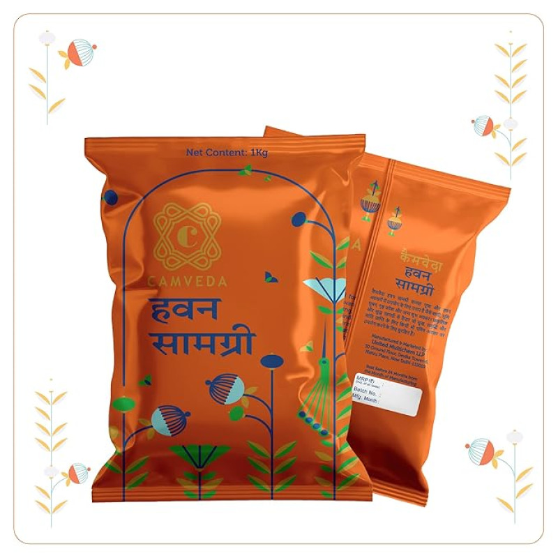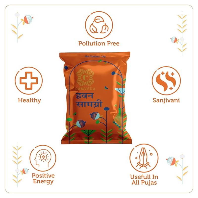 Camveda Hawan Samagri 1KG |100% Pure and Natural | Mixture of Various Dried Herbal Roots and Leaves for Vedic Yagya Pujan. Hawan Worship Pooja Samagri